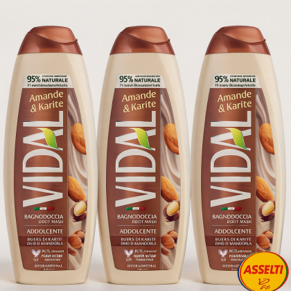 Set ASSELTI® Origine Italia – 3 x Vidal Almond & Karité 500 ml, gel de duș emolient cu unt de shea și ulei de migdale