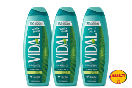 Set ASSELTI® Origine Italia – 3 x Vidal White Musk 500 ml, gel de duș tonifiant cu mosc alb