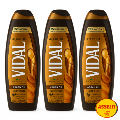 Set ASSELTI® Origine Italia – 3 x Vidal Argan Oil 500 ml, gel de duș hrănitor cu ulei de argan bio