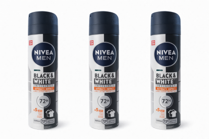 Set NIVEA MEN Black & White Invisible Ultimate Impact – 3 x 150 ml, spray antiperspirant, protecție 72h