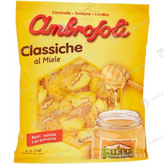 Bomboane Ambrosoli cu Miere. Aceste bomboane invelesc o inima de miere, sunt bomboane de culoare galbene cu un continut pretios, mierea. Aceste bomboane au puterea de a ajuta si in caz de durere in gat, deoarece mierea are aceste proprietati benefice asupra gatului. Ingrediente: zahar, sirop de glucoza - fructoza, miere 23%. Gramaj: 135gr