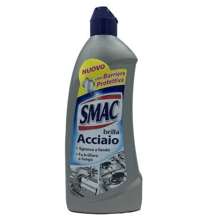 Proprietati: Smac pentru stralucirea otelului crema, datorita formulei mai eficienta cu parfum de lamaie degreseaza in profunzime suprafetele din otel, indeparteaza si grasimea persistenta ca grasimea arsa si grasimea, elimina calcarul si garanteaza un rezultat imbatabil. De asemenea crema, datorita barierei protective protejeaza suprafetele de otel si le lasa stralucitoare pentru mai mult timp. Ideal si pentru: suprafete de lucru, oale, hote.