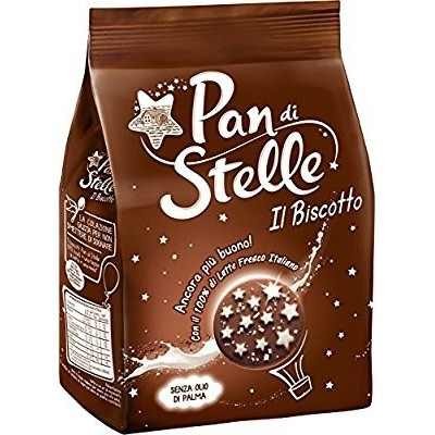 Biscuitii Pan di Stelle, sunt biscuiti de ciocolata cu stelute de crema de vanilie imprimate pe ei. Sunt ideali pentru a incepe ziua impreuna cu o ceasca de lapte.