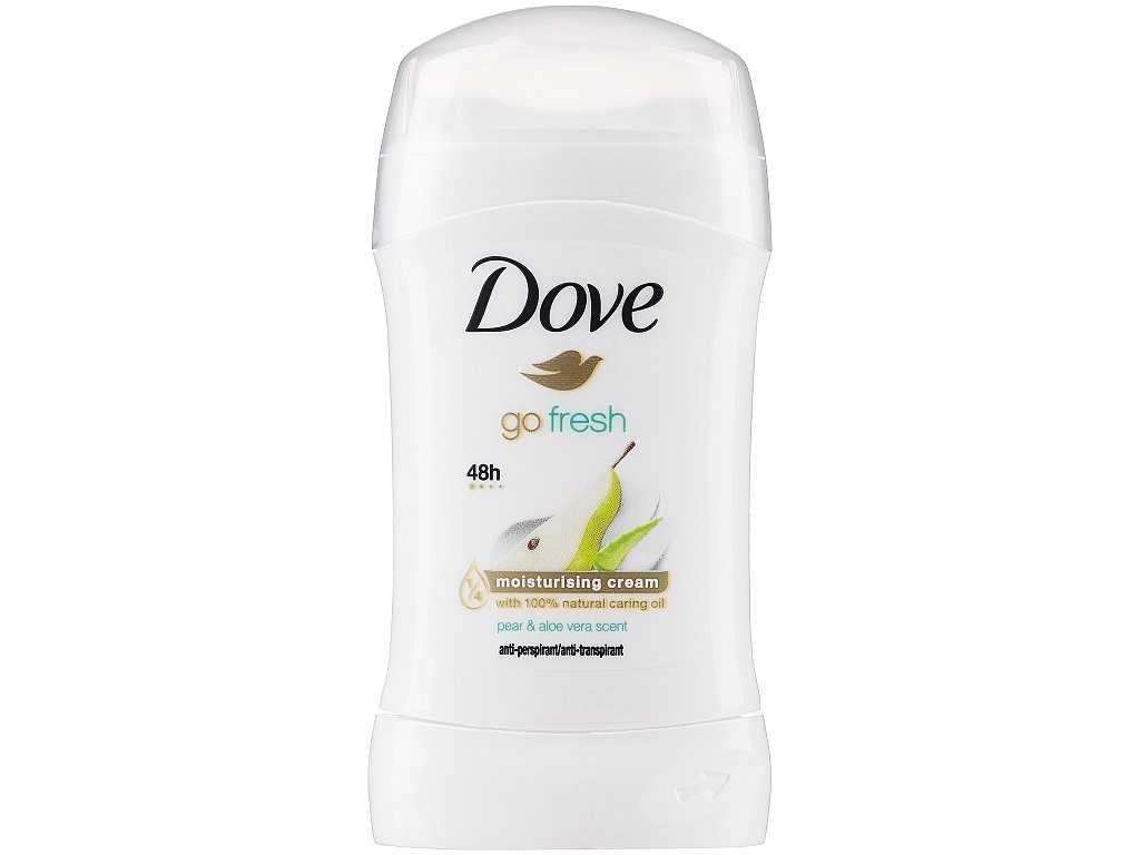 Pentru o incredere de durata si un parfum fructat de care nu te vei mai satura, alege antiperspirantul stick Dove Go Fresh Pear & Aloe Vera.