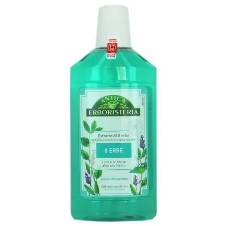 8 Erbe este o apă de gură inovatoare de la Antica Erboristeria, îmbogățită cu extracte din 8 plante și fluor, pentru a reduce bacteriile și pentru a oferi o prospețime de lungă durată.