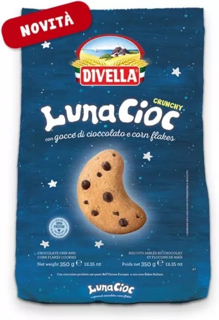 Biscuiți Divella LunaCioc Cu Bucati De Ciocolata Si Fulgi De Porumb