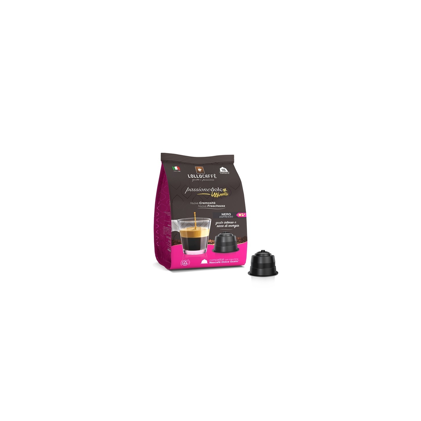 16 Capsule Lollo Caffe Espresso Nero – Compatibile Dolce Gusto