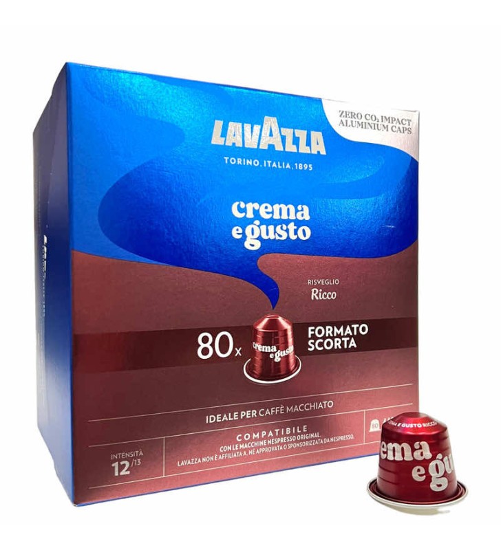Cafea capsule Lavazza Crema & Gusto Ricco, aluminiu, compatibile Nespresso, 80 buc