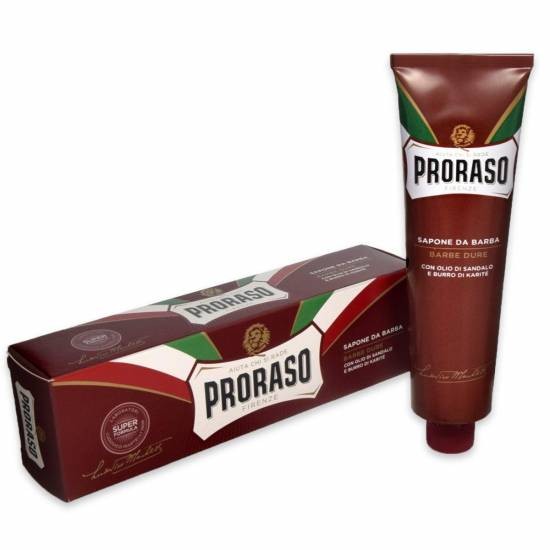 Proraso ajuta pe cei care se barbieresc. Din 1948 in alegerea frizerilor din Italia si din intreaga lume, pentru un stil de barbierit unic, de calitate, la frizer ca si acasa. O metoda completa de barbierit creata gandindu-se la nevoile profesionistilor si ale celor care vor sa aiba grija de ei insisi in fiecare zi fara compromisuri. Sapun de barbierit: marele clasic al barbieritului. Este produs si astazi cu rigoarea procesului de productie „saponificare la cald” care transforma ingredientele de origine naturala in sapun extrem de fin, bogat si concentrat. Datorita inovatiei constante a laboratoarelor Ludovico Martelli, ia nastere noua super formula de sapun de ras Proraso. Potrivit pentru orice tip de barba, combina protectia perfecta a pielii cu usurinta de barbierit chiar si parul dur si greu de ras. Combinatia speciala de componente emoliente si hidratante face din ritualul de barbierit o placere zilnica indispensabila. Imbogatita cu extracte naturale, ulei de santal si unt de shea, formula sa inmoaie chiar si cele mai dure, mai dificile fire de barba, facandu-le mai usor de barbierit. Mod de utilizare: Aplicati produsul pe pamatuful de ras umezit anterior. Apoi, cu miscari circulare, omogenizati sapunul pe fata pentru a obtine o spuma moale si compacta. Recomandare - pentru un barbierit impecabil, aplicati intotdeauna crema pre barbierit Proraso inainte de sapun.