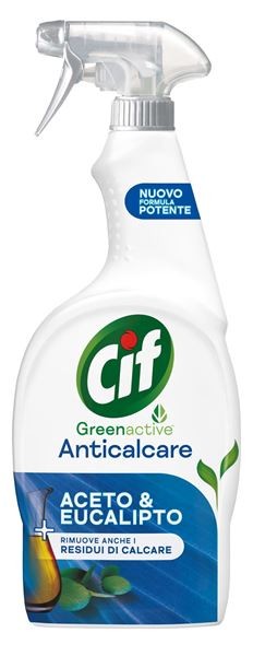 Aceasta formula Cif Greenactive contine: 100% agenti anticalcar de origine naturala, 100% parfum biodegradabil. Nu lasa in urma reziduuri chimice agresive. Cif solutie anticalcar pentru baie este aliatul tau pentru indepartarea reziduurilor de sapun si calcar. datorita formulei sale cu otet, unul dintre cele mai cunoscute ingrediente naturale. Incercati-l pe chiuveta, dus si gresie de baie pentru o curatare stralucitoare, cu un parfum proaspat de eucalipt, combinatia potrivita de ingrediente naturale si curatenie exceptionala.