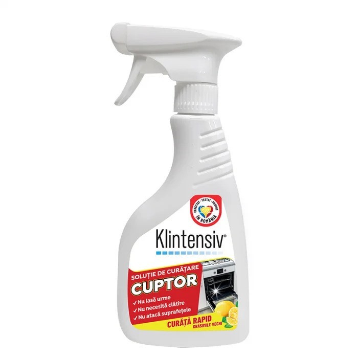 SOLUȚIE CURĂȚARE CUPTOR – spray uşor de utilizat, conceput special pentru a reda luciul cuptoarelor de tip electric, cu gaz sau microunde. Acest produs se poate aplica şi pe suprafaţa tăvilor de coacere, rotisoare sau grătare.