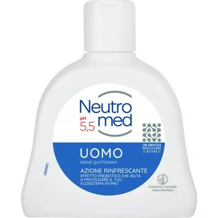 Descoperiti linia de solutii intime, concepute pentru a garanta o igiena precisa si delicata, pentru respectarea maxima a partilor intime si a pH-ului fiziologic. Neutromed Uomo, datorita actiunii sale racoritoare, este special conceput pentru igiena intima a barbatilor. Imbunatatit cu complexul Active Protection, Neutromed Uomo, cu un pH de 5.5, este ideal pentru igiena intima a barbatilor pentru uz zilnic. Formula sa proaspata si eficienta ajuta la combaterea mirosurilor neplacute. Testat dermatologic. Fara coloranti artificiali. 96% ingrediente naturale, apa inclusa.