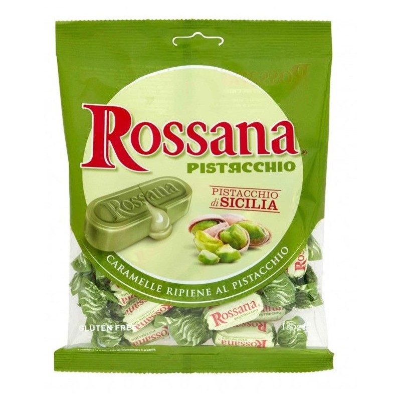 Bomboane Umplute Cu Crema De Fistic Rossana. Acestea sunt dulciurile iconice originale cu fistic de la Rossana. Iubite de toată lumea! Fabricat cu 7,7% fistic.