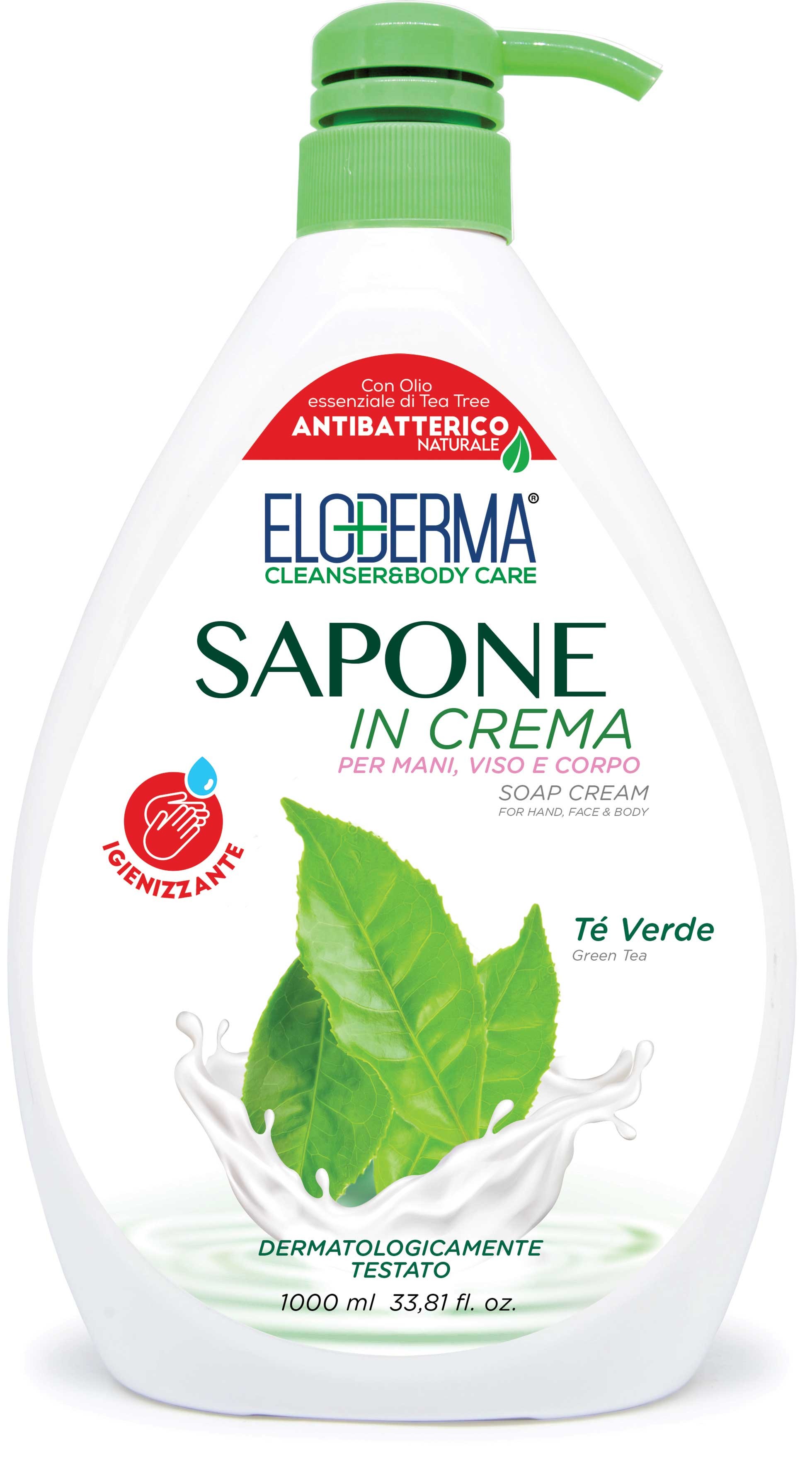 Eloderma Sapun Cremă pentru Mâini, Față și Corp Ceai Verde - 1 L