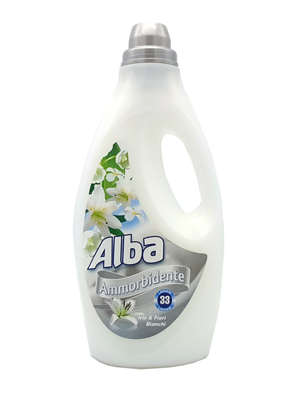 Alba Balsam de rufe Iris & Flori Albe, 33 de spălări, 1850 ml – Oferă hainelor tale o moliciune deosebită și un parfum delicat de iris și flori albe, care durează îndelung. Formula sa specială protejează fibrele textile și facilitează călcarea. Ideal pentru toate tipurile de țesături.