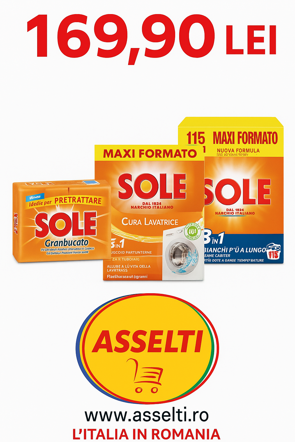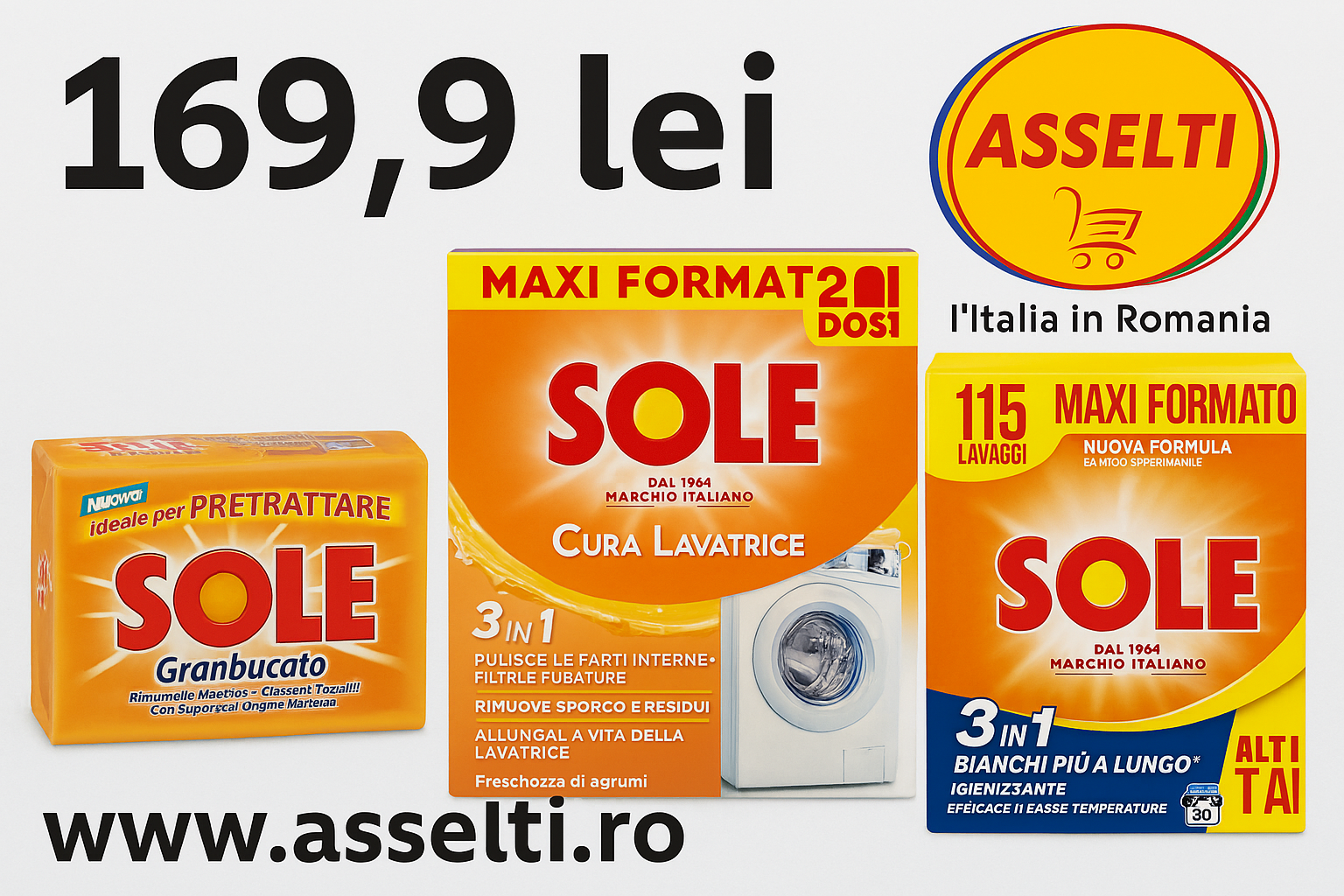 Descoperă pachetul complet pentru o curățenie impecabilă în gospodăria ta, cu produse autentice din Italia, marca SOLE – disponibile acum pe www.asselti.ro!