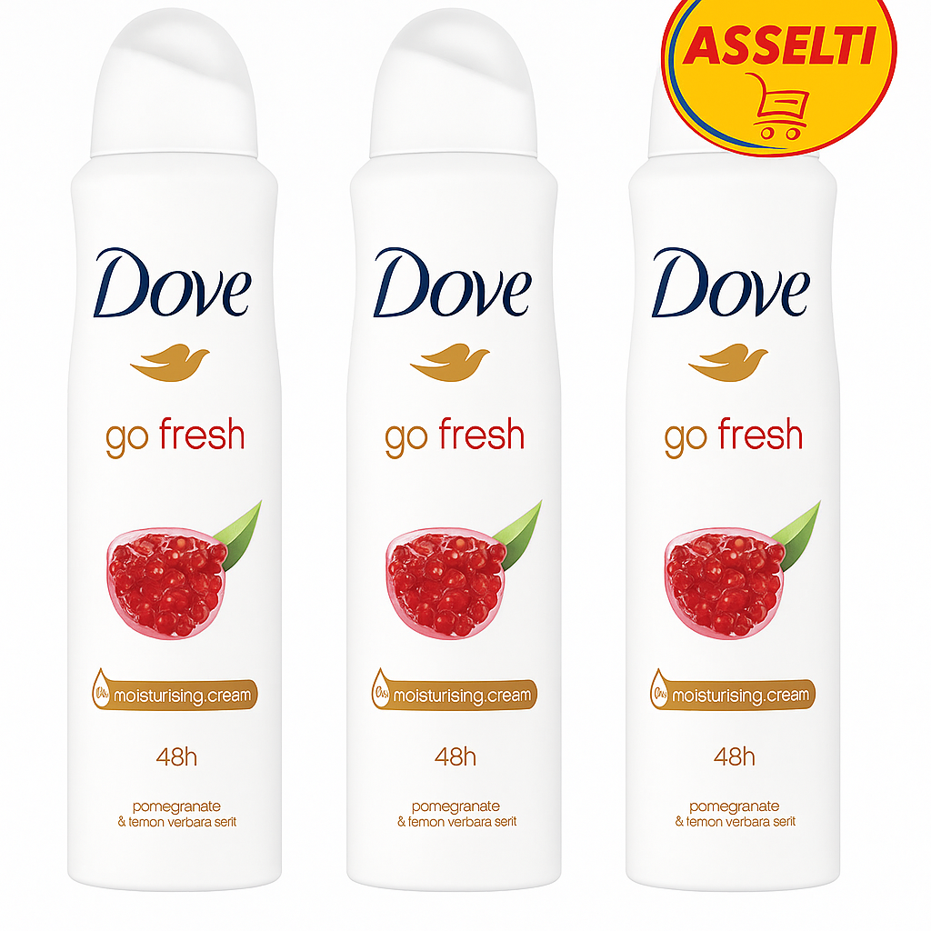 Dove Go Fresh – deodorant spray cu rodie și cremă hidratantă – 48h protecție,3x150ml
