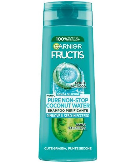 Garnier Fructis Pure Non-Stop Coconut Water 250ml – Șampon purificator pentru scalp gras și vârfuri uscate
