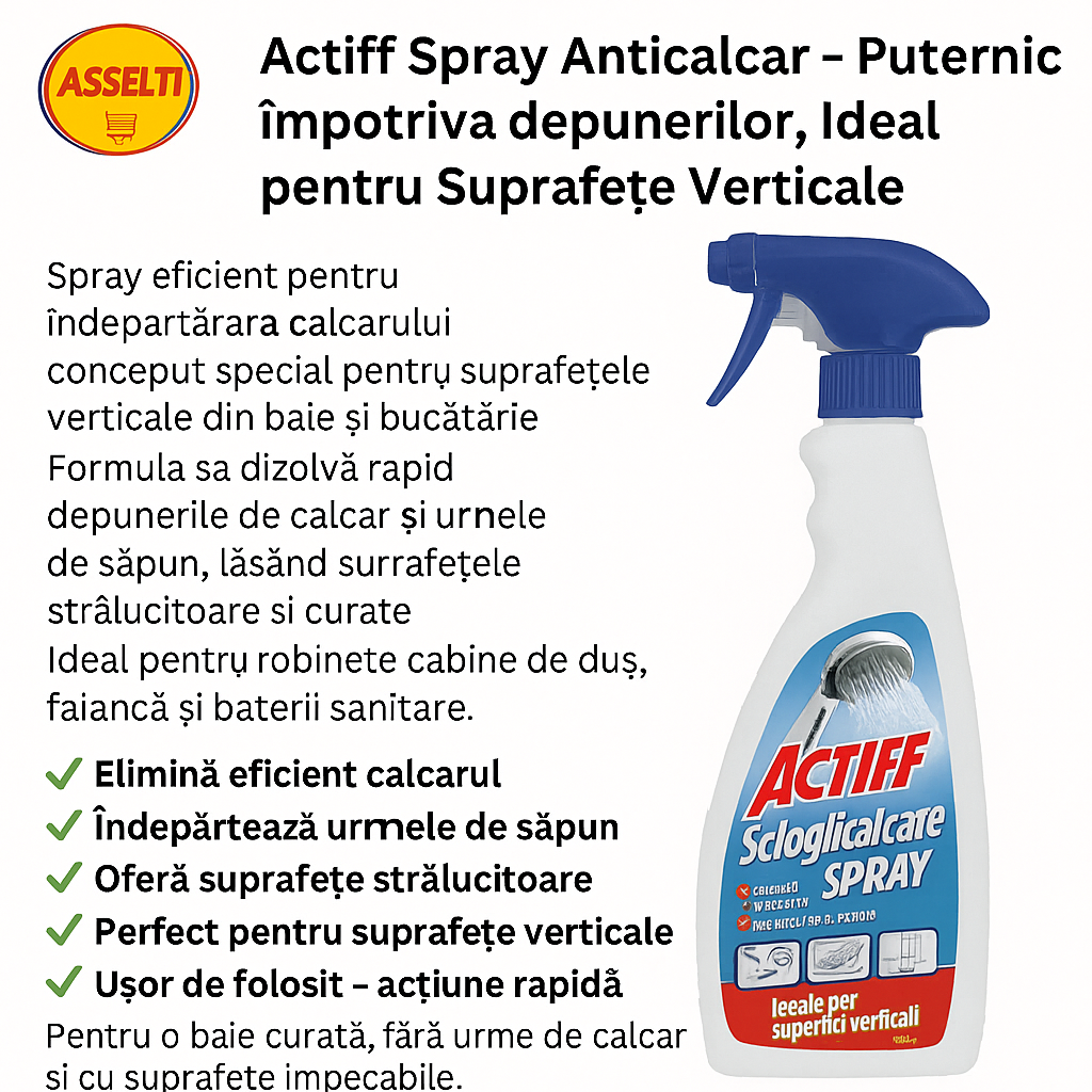 Actiff Spray Anticalcar – Puternic împotriva depunerilor, Ideal pentru Suprafețe Verticale,750 ml