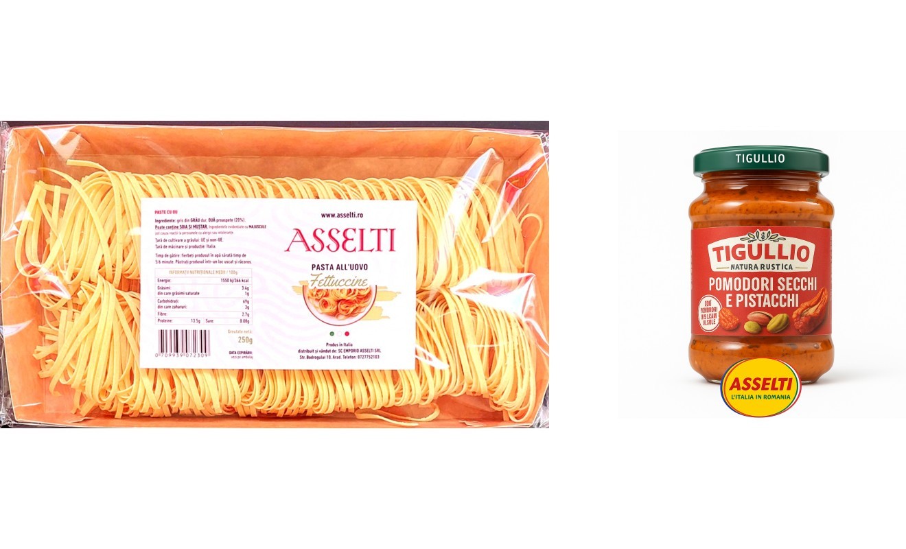 Pachet Gourmet Asselti – Paste cu ou Fettucine & Sos Tigullio Roșii Uscate și Fistic