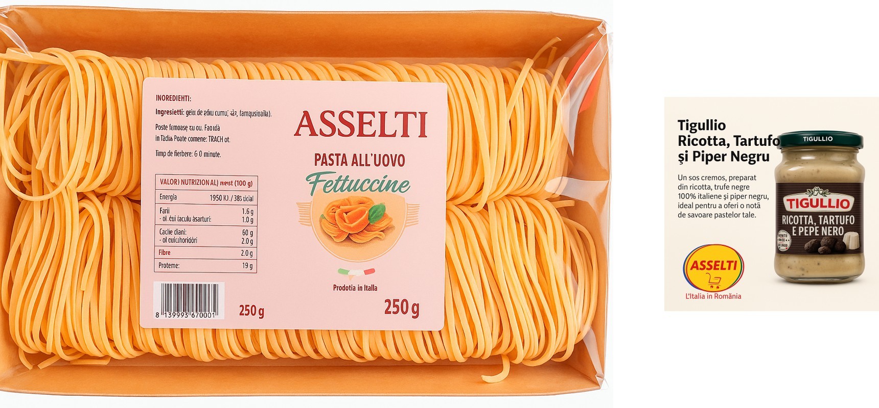 Pachet Asselti – Fettuccine cu Ou & Sos Tigullio Ricotta, Trufe și Piper Negru