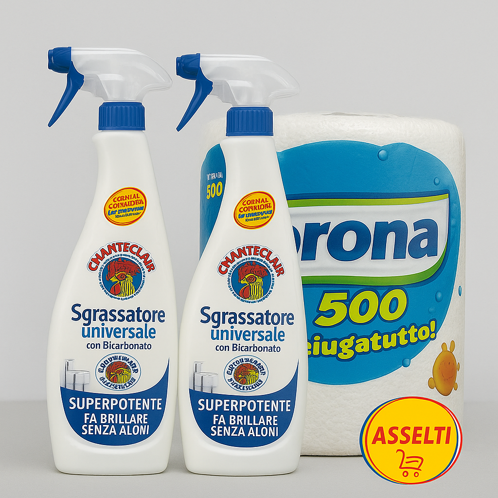 Pachetul cu 2 Degresanți Chanteclair 600ml, și 1 Rulou de Hârtie Corona 500