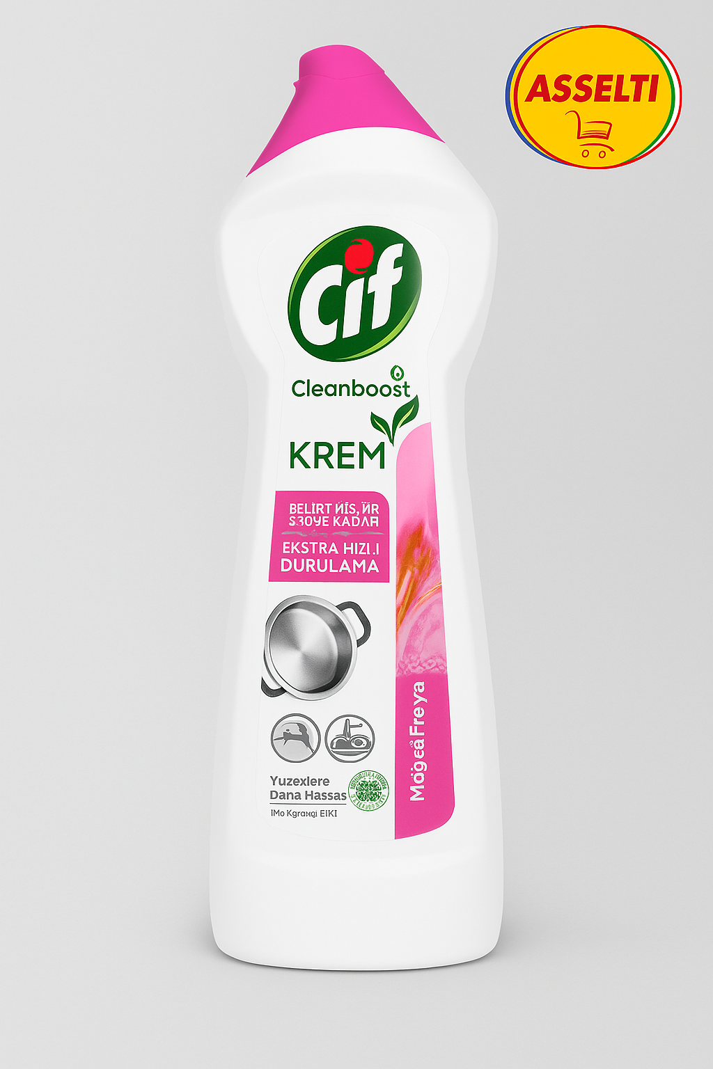 Cif Cleanboost Krem este o cremă abrazivă pentru curățare, cu aromă plăcută de mușețel și frezie, produsă în Turcia. Formula îmbunătățită permite o curățare eficientă a murdăriei persistente, oferind în același timp o clătire rapidă și ușoară. Este ideală pentru suprafețe precum chiuvete, aragazuri, băi, robinete și inox.