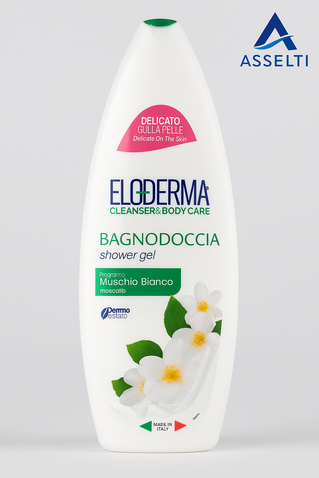 Redescoperă prospețimea și eleganța cu gelul de duș Eloderma Muschio Bianco (Mosc Alb), creat special pentru a curăța delicat pielea, oferindu-i în același timp un parfum rafinat și persistent.
