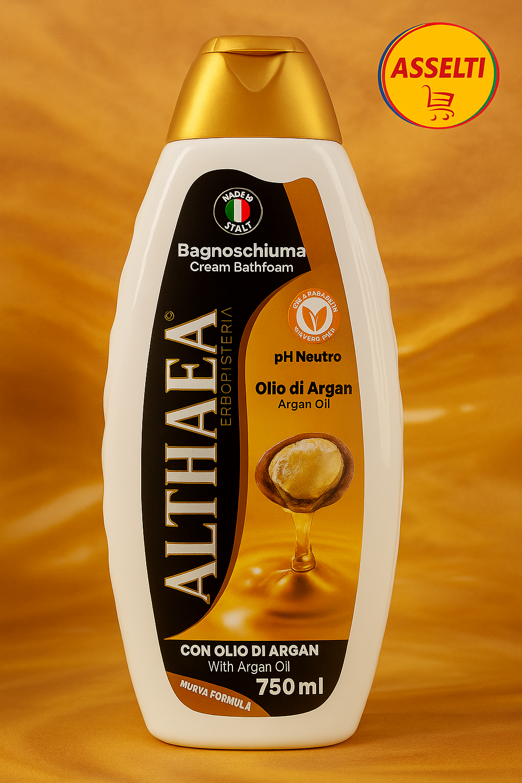 Bagnoschiuma ALTHAEA cu Ulei de Argan, 750 ml – Fără parabeni, formulă delicată, Made in Italy
