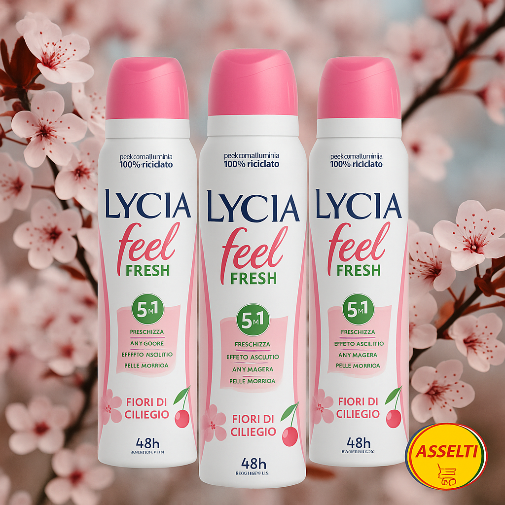Deodorant spray Lycia Feel Fresh Fiori di Ciliegio – 3x150 ml – 48h protecție