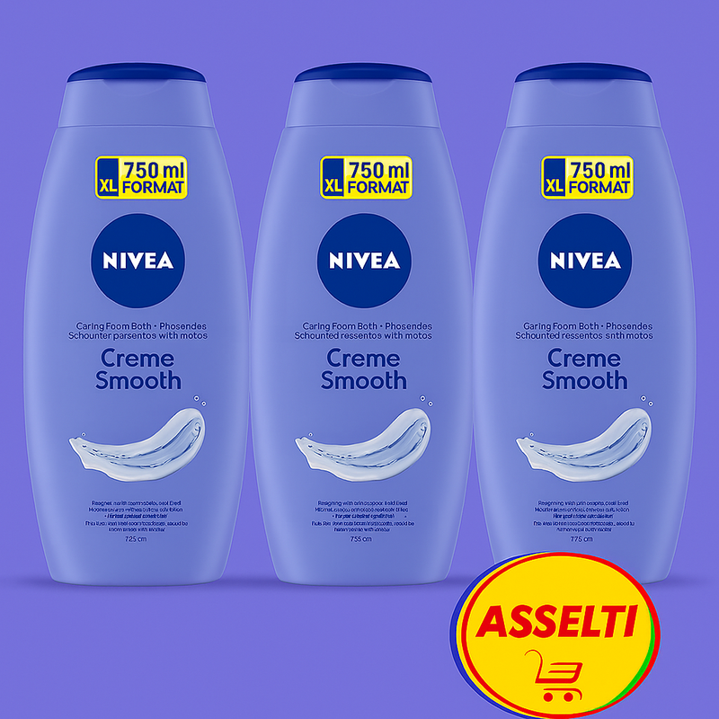 Nivea Creme Smooth – Spumă de baie cu unt de shea, 3x750ml