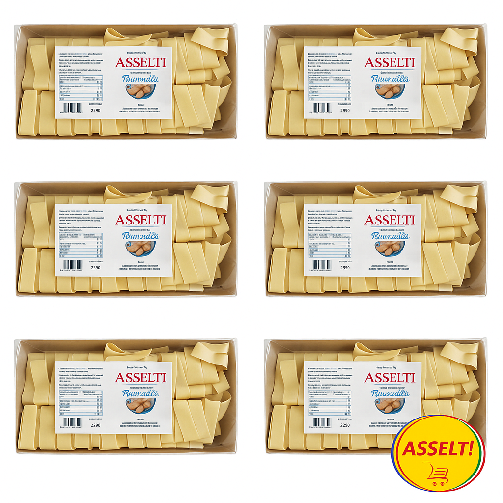 Descoperă gustul autentic al Italiei cu setul de 6 cutii de Pappardelle AsseIti, paste artizanale cu ou, produse în Italia. Realizate din grâu dur de cea mai bună calitate și ouă proaspete, aceste pappardelle se remarcă prin textura lor fină și gustul bogat.