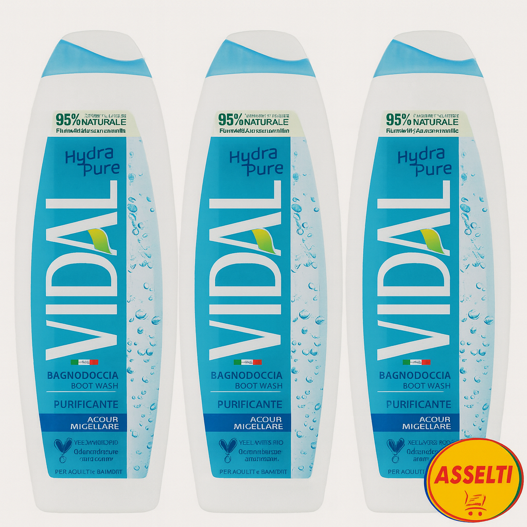 Set ASSELTI® Origine Italia – 3 x Vidal Hydra Pure 500 ml, gel de duș purifiant cu apă micelară