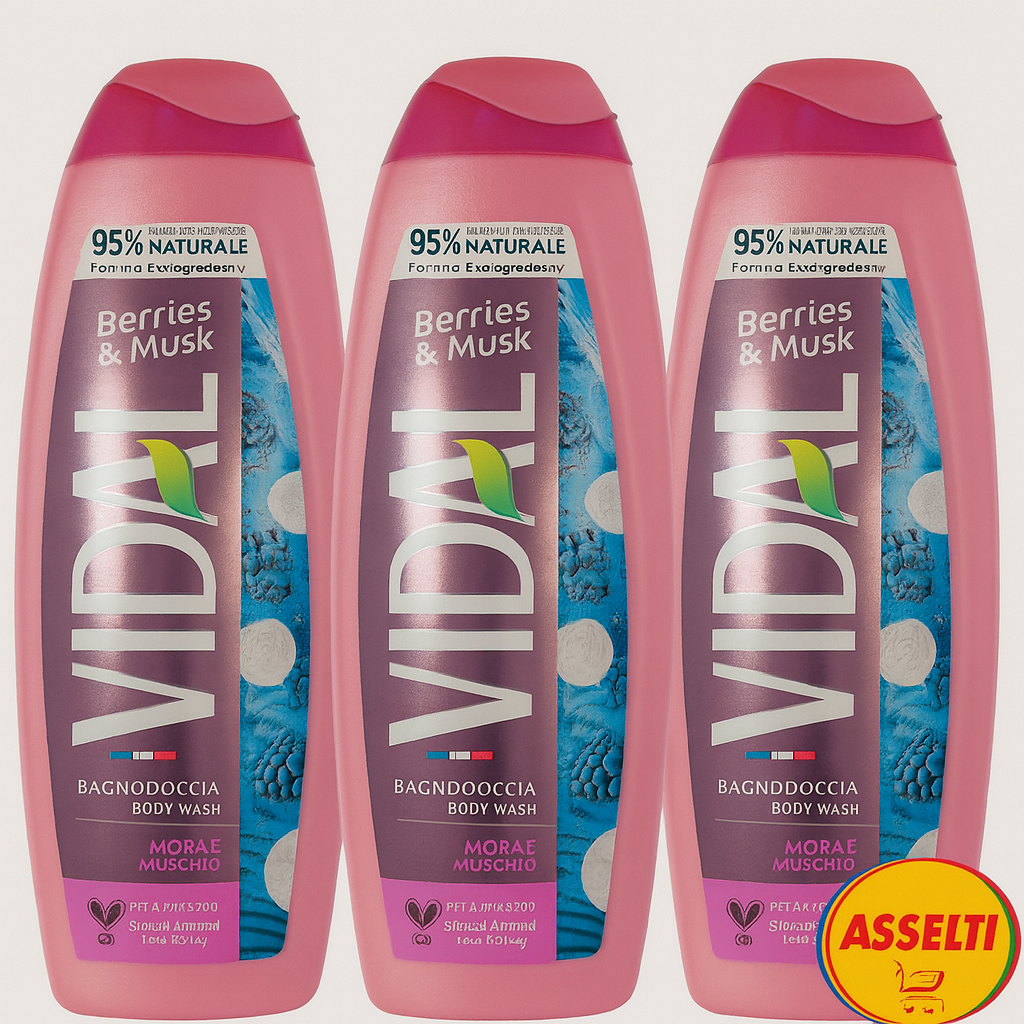 Set 3 x Vidal Berries & Musk 500 ml – Gel de duș parfumat cu fructe de pădure și mosc