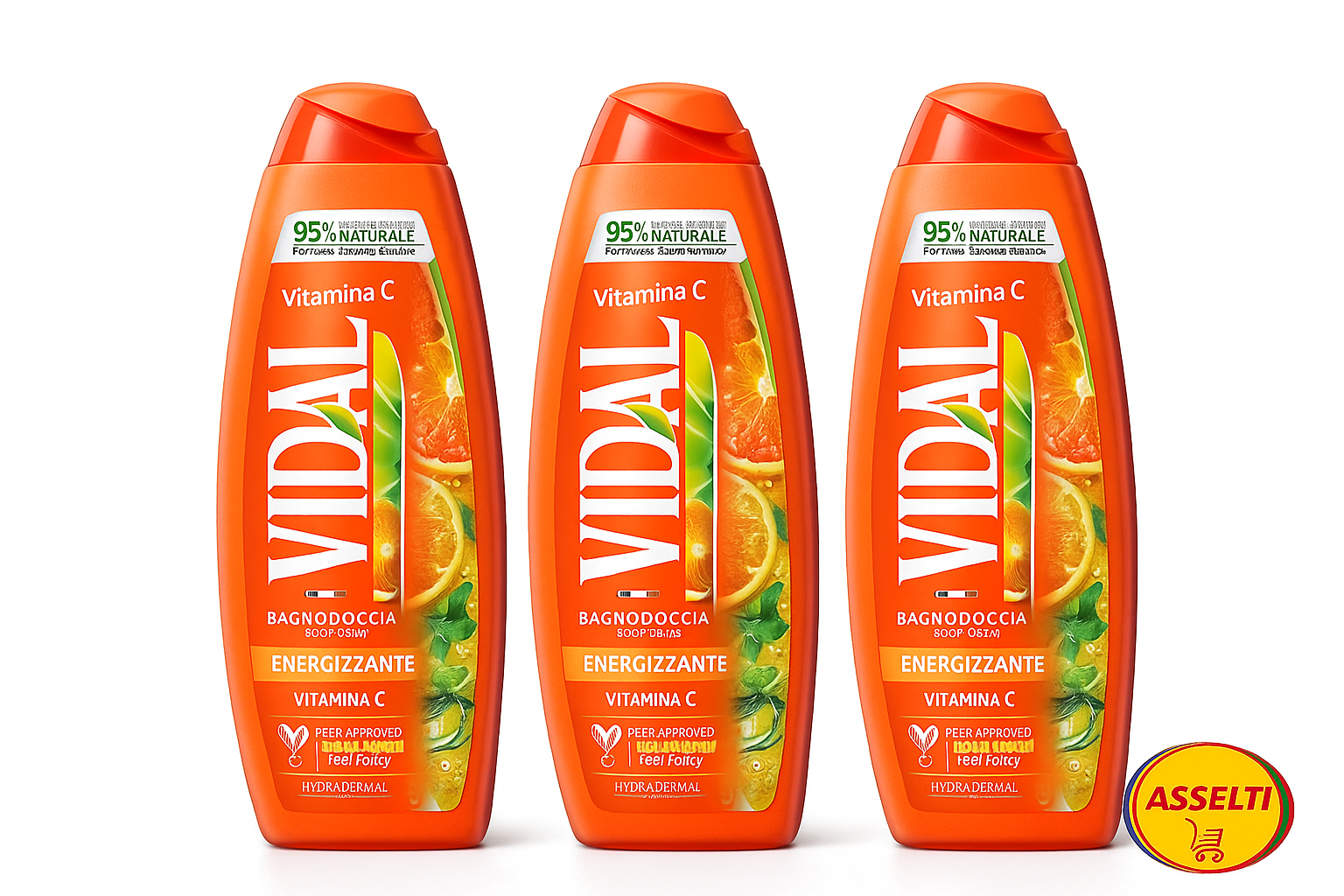 Set ASSELTI® Origine Italia – 3 x Vidal Vitamina C 500 ml, gel de duș energizant cu vitamina C