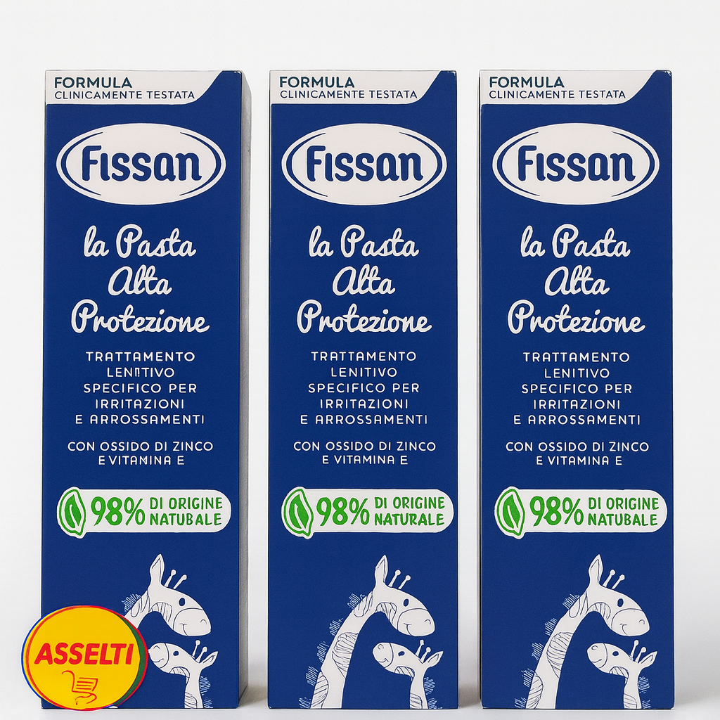 Set ASSELTI® Origine Italia – 3 x Fissan Pasta Alta Protezione 100 ml, cremă calmantă pentru iritații