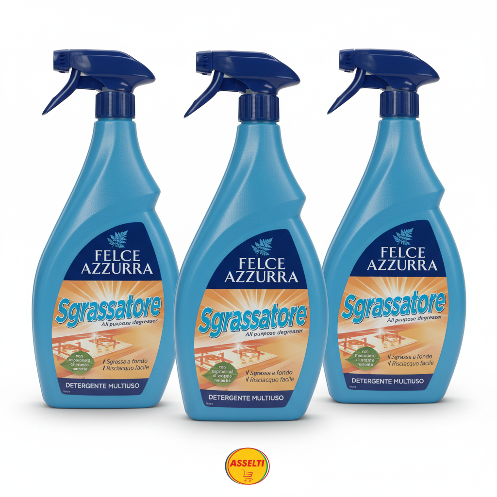 Set ASSELTI® Origine Italia – 3 x Felce Azzurra Sgrassatore 500 ml, degresant multiuso pentru grăsime și murdărie persistentă