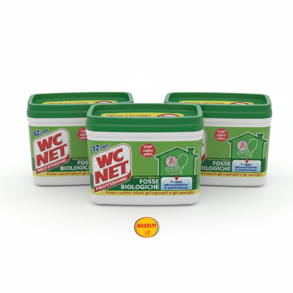 Set ASSELTI® Origine Italia – 3 x WC Net Professional Fosse Biologiche 12 capsule, prevenție pentru mirosuri, înfundări și întreținerea foselor