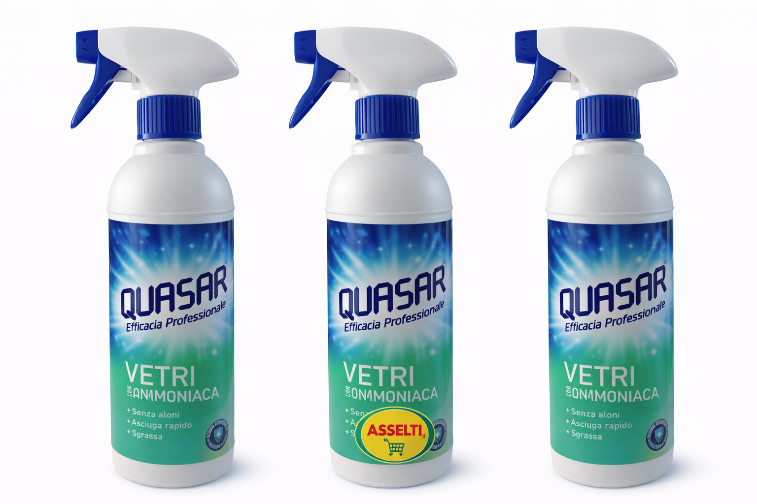 Setul conține 3 spray-uri Quasar Vetri cu amoniac, fiecare cu capacitatea de 580 ml, concepute pentru curățarea eficientă a geamurilor, oglinzilor și a tuturor suprafețelor din sticlă.