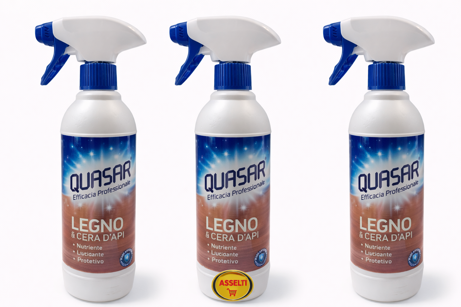Setul de 3 bucăți Quasar pentru lemn cu ceară de albine (3 x 580 ml) este soluția ideală pentru curățarea, hrănirea și protejarea suprafețelor din lemn. Formula profesională curăță eficient murdăria, redă strălucirea naturală și creează un strat protector care ajută la menținerea aspectului lemnului în timp.