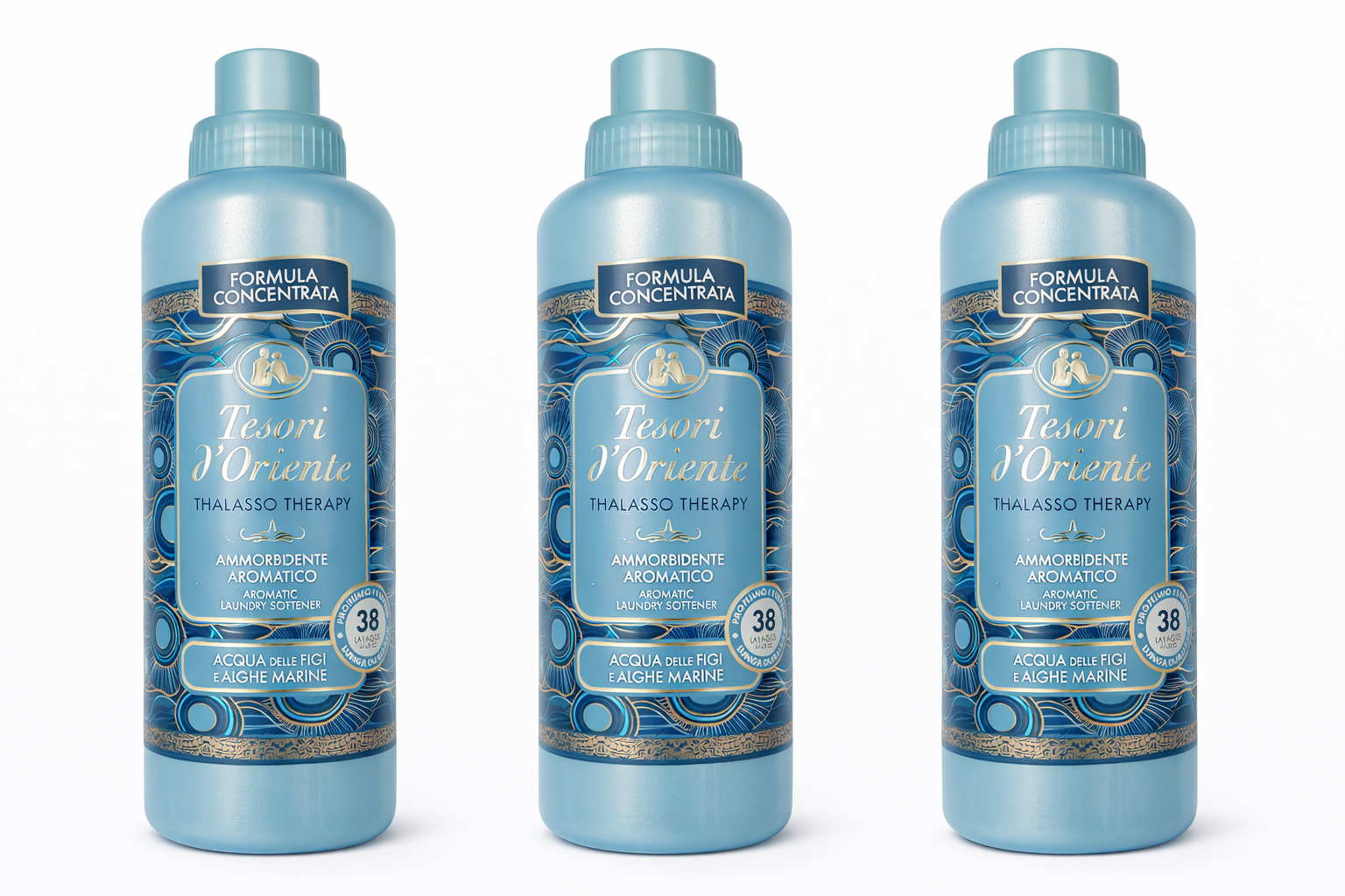 Setul conține 3 balsamuri de rufe Tesori d’Oriente Thalasso Therapy, fiecare cu 760 ml, cu formulă concentrată, special creată pentru a oferi rufelor un parfum intens și de lungă durată.