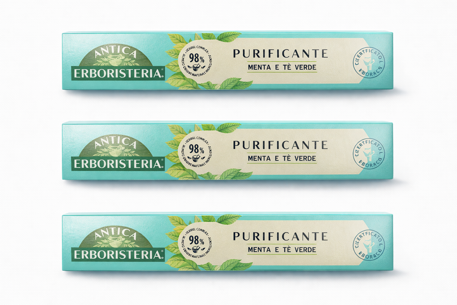 Set 3 buc. Pastă de dinți Antica Erboristeria Purificantă – Mentă și Ceai Verde, 75 ml/buc