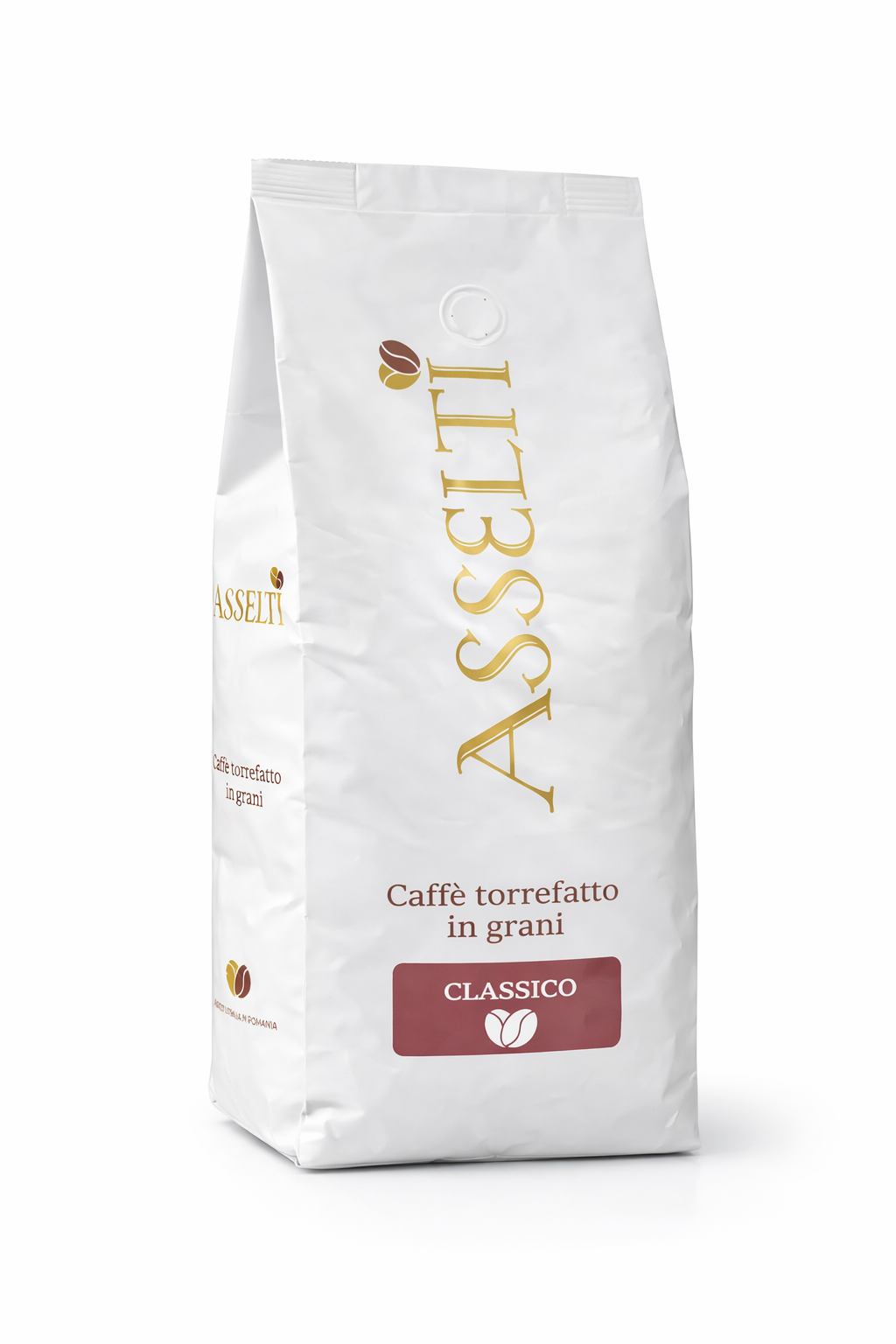 Cafea boabe ASSELTI Classico – 1 kg, amestec Arabica & Robusta, prăjire italiană, gust echilibrat