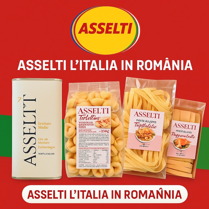 Din 2023, am creat propriul brand ASSELTI, înregistrat la OSIM, lansând produse premium fabricate exclusiv în Italia. Primul produs a fost uleiul extravirgin de măsline provenit din Puglia, sudul Italiei – regiunea de origine a fondatorului, Asselti Giuseppe. Gama s-a extins ulterior cu paste cu ou, paste speciale, paste umplute, precum și Gnocchi di Patate, toate realizate în Italia din ingrediente de calitate superioară.