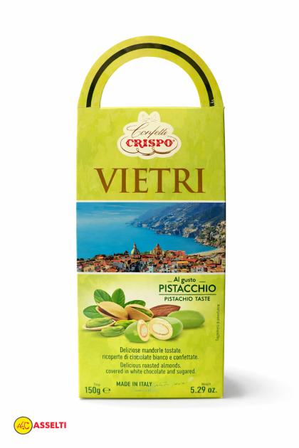 Confetti Crispo Vietri cu Fistic – Migdale prăjite în ciocolată albă, 150 g, Made in Italy