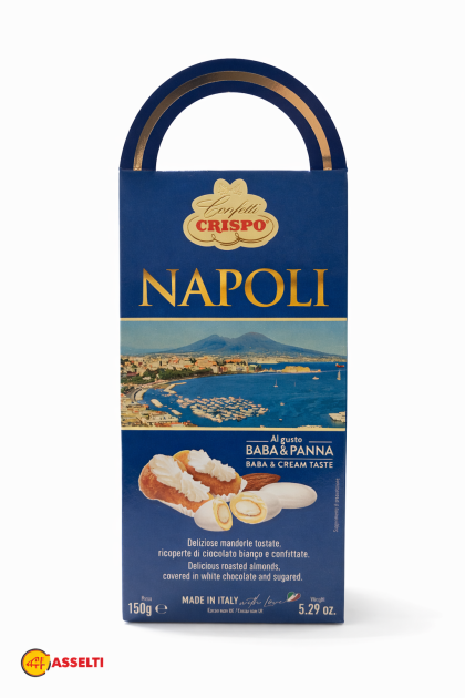 Confetti Crispo Napoli Baba & Panna – Migdale prăjite în ciocolată albă, 150 g, Made in Italy
