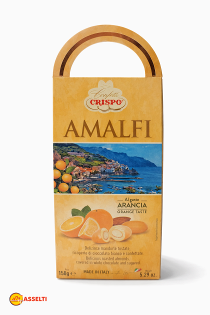 Confetti Crispo Amalfi cu Portocală – Migdale prăjite în ciocolată albă, 150 g, Made in Italy