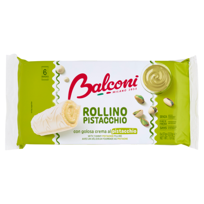 Rulada cu crema de fistic, Balconi, set 6 bucati, acoperita cu ciocolata alba, 222g