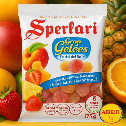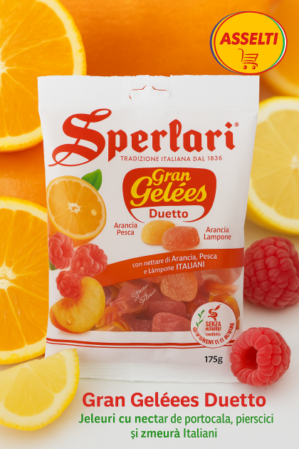 Sperlari Gran Gelées Duetto – 175 g – Jeleuri cu nectar de portocale, piersici și zmeură