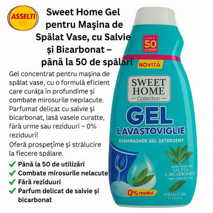 Sweet Home Gel pentru Mașina de Spălat Vase, cu Salvie și Bicarbonat – până la 50 de spălări,1l